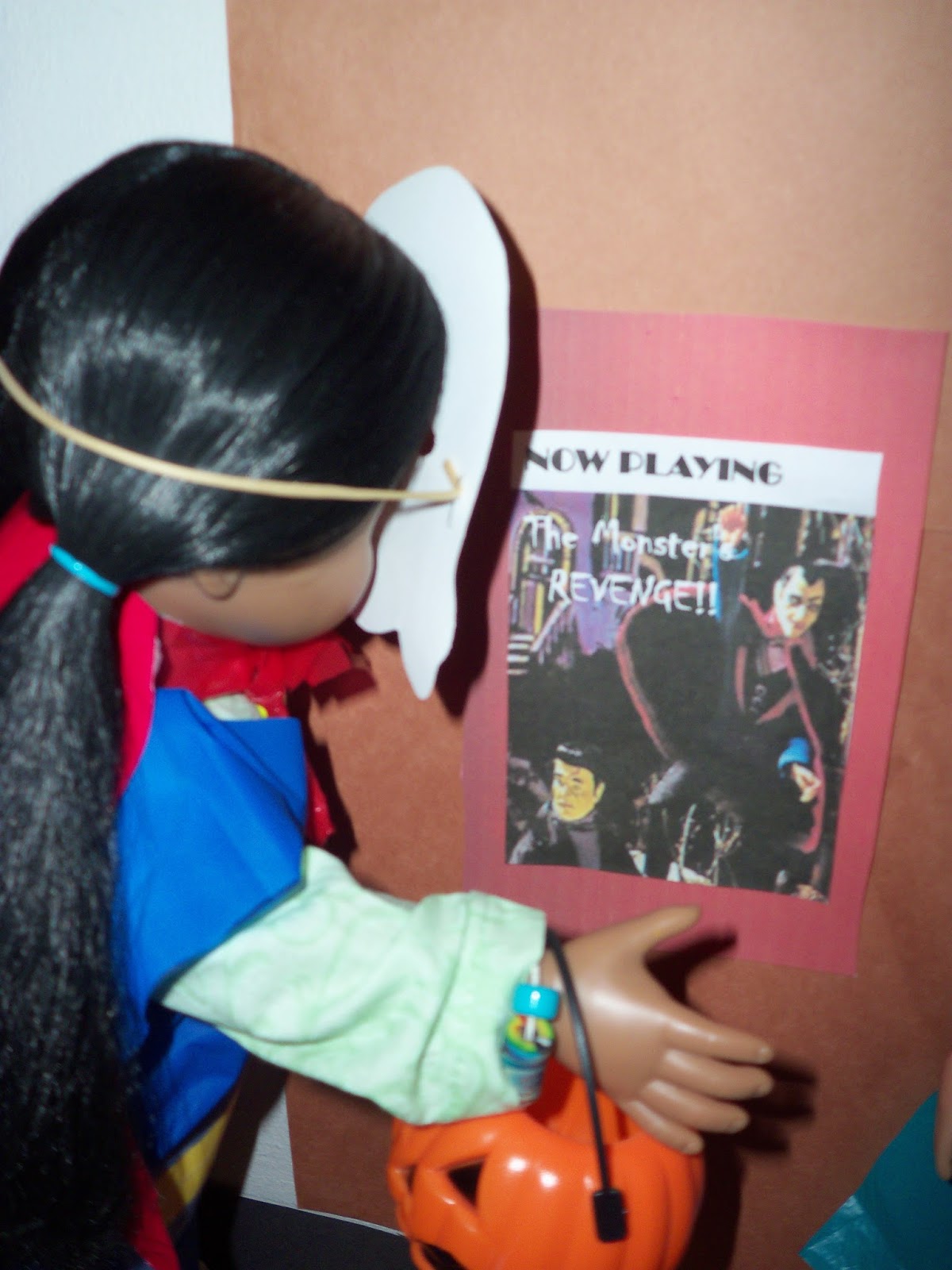 I hope you all had a super Halloween! I know I did, but at first I wasn't sure it was gonna be fun. The first part was OK. We had a party at school, with a special assembly of one of the dads telling these creepy ghost stories! *shudder* It was pretty scary! Later on we went Trick-or-treating, and I let Kim talk me into going to see a spooky movie with some of our friends.